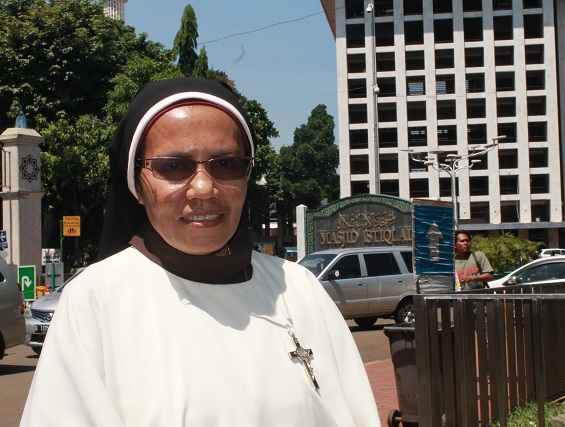 HIDUPKATOLIK.com – Di antara ratusan biarawan dan biarawati yang menghadiri misa dan pemberkatan Minyak Krisma yang diadakan setiap tahun di Gereja Santa Perawan Maria Diangkat ke Surga, Paroki Katedral, Hidupkatolik.com turut menyapa Sr Theresia Yulia, BSMC pada Kamis, 29/3.