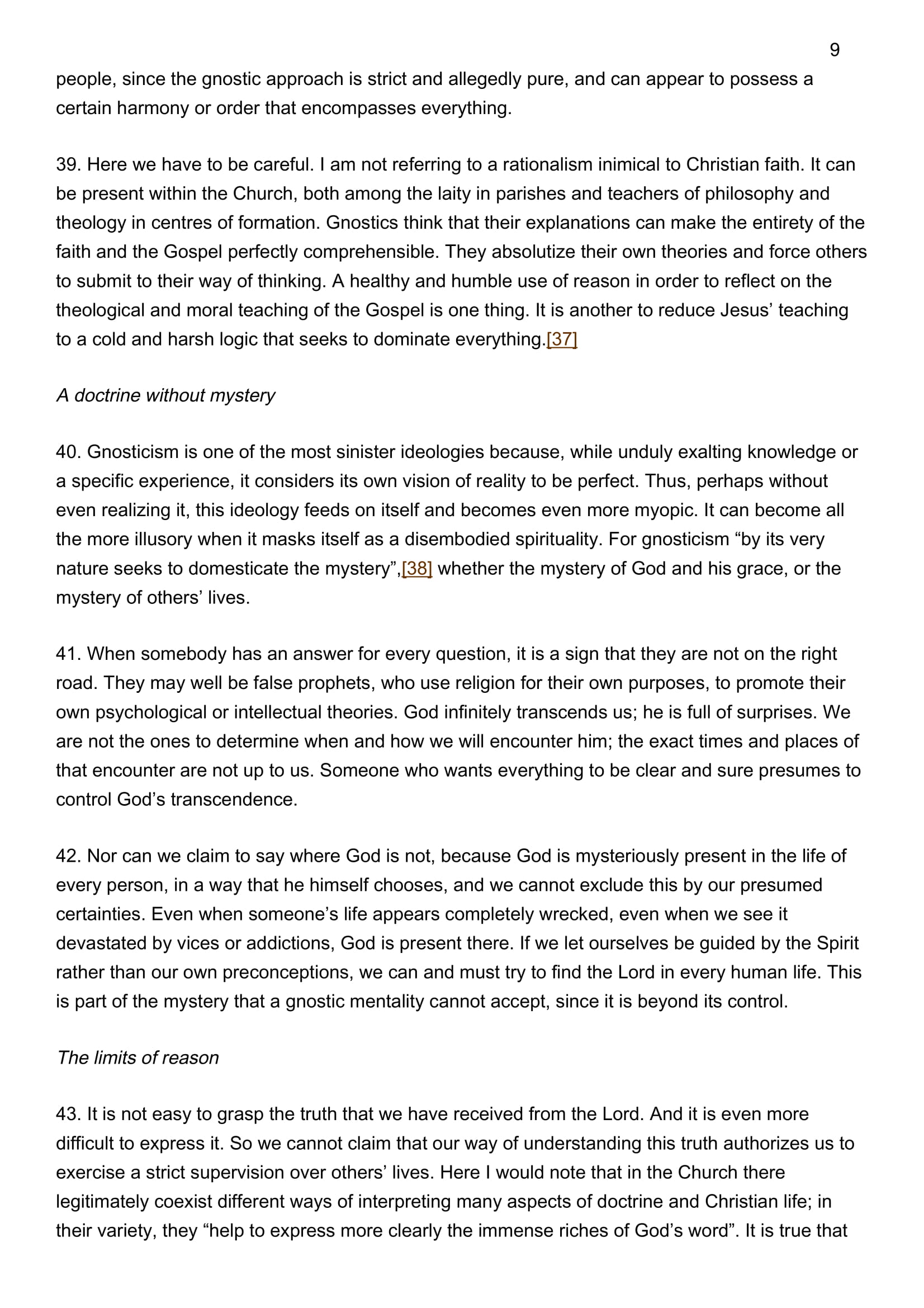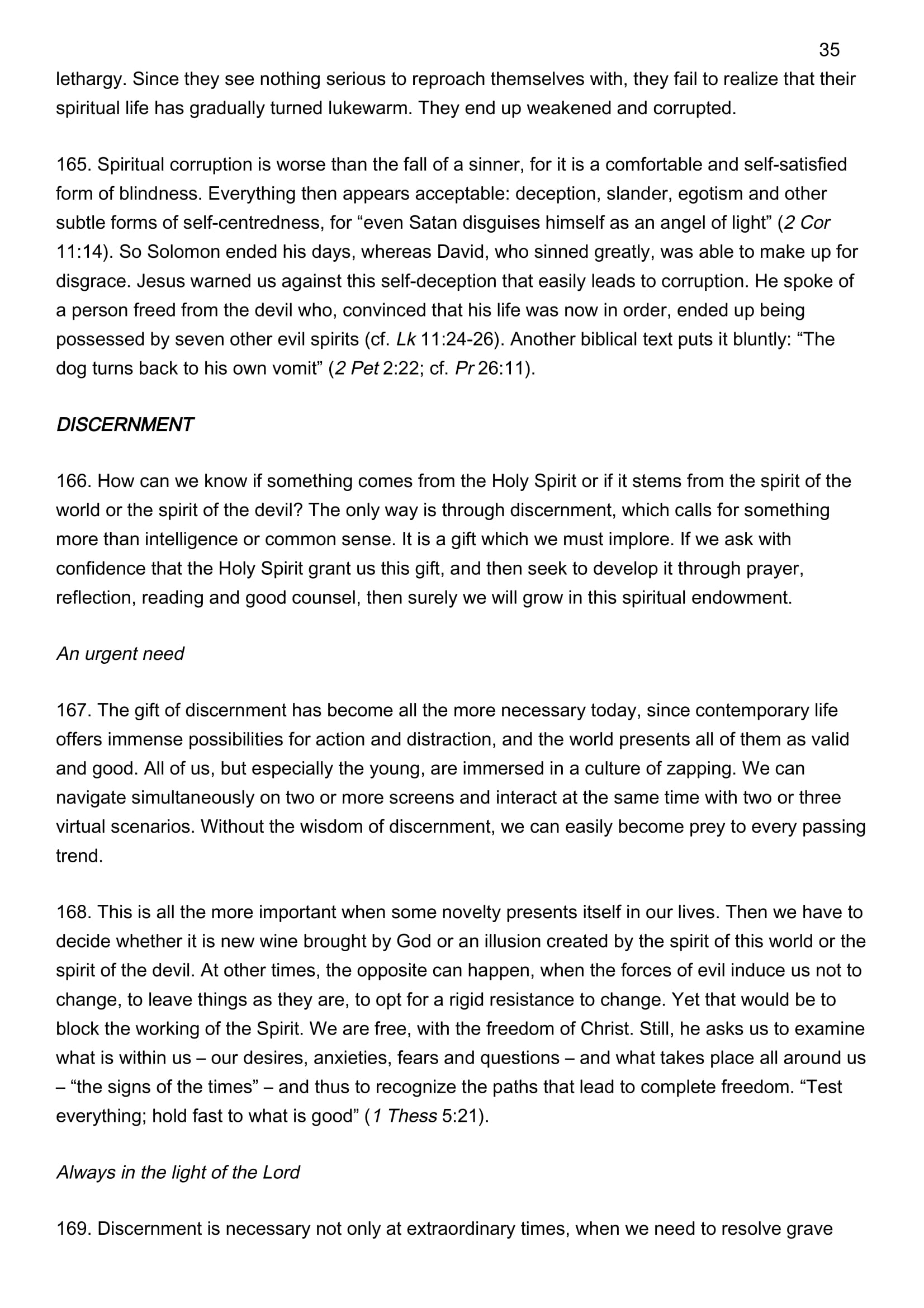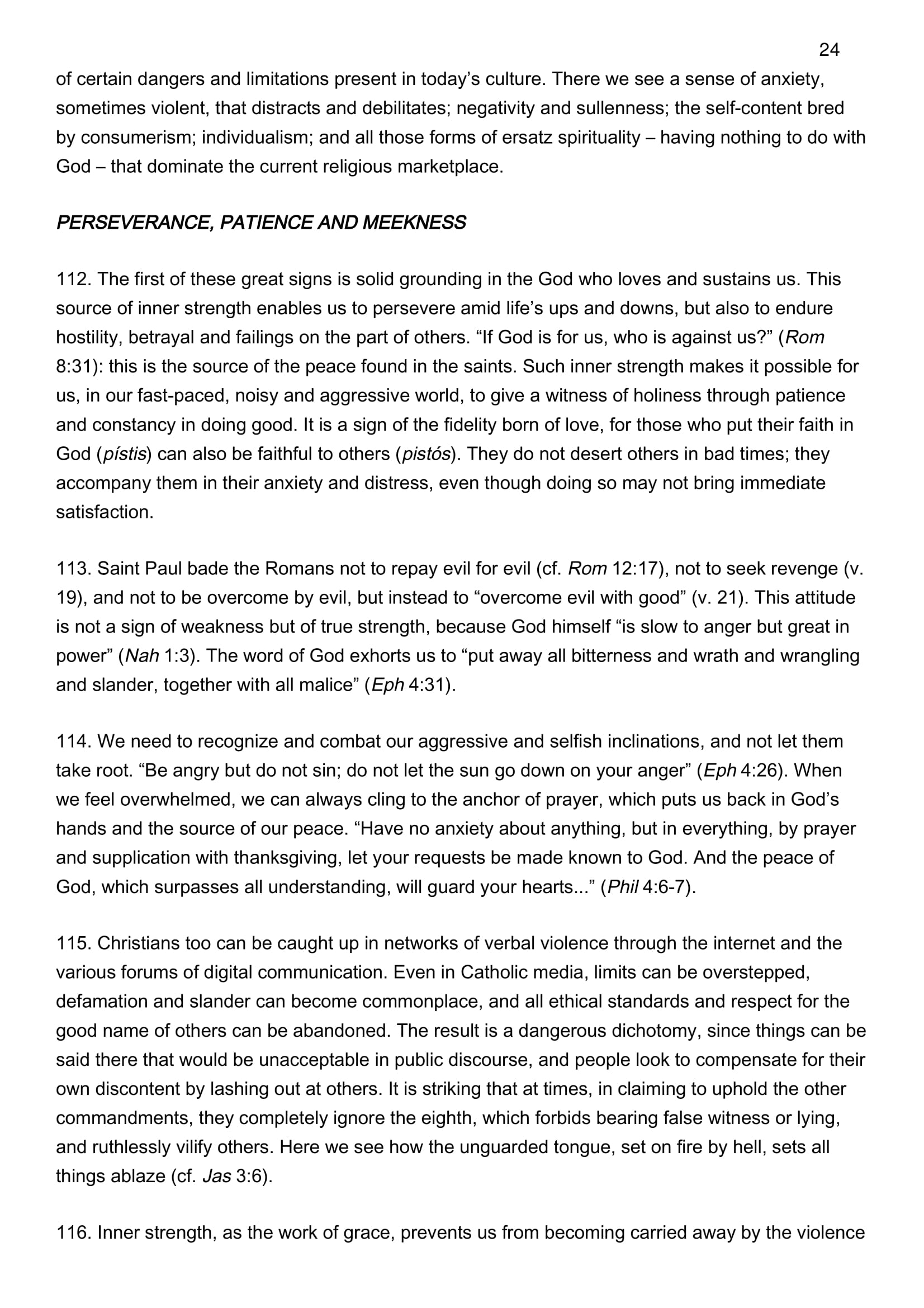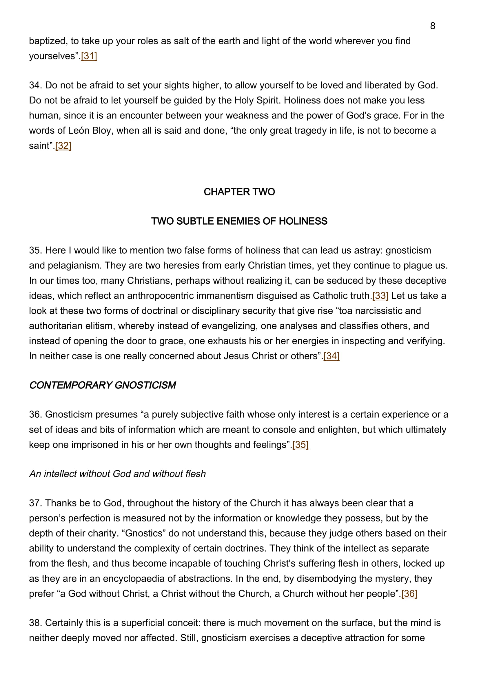 - Bab Dua, Two Subtle Enemies of Holiness (Dua Musuh Halus Kesucian), menyinggung tentang Contemporary Gnosticism (12 ayat) dan Contemporary Pelagianism (16 ayat)