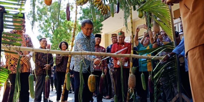 Pria kelahiran 3 Mei 1959 ini pun diberi Mandau untuk memotong batang bambu. Sebelumnya, Rudiantara memotong buah dan sayuran, lambang kesejahteraan yang tergantung di Palang. Ketika tiba saatnya memotong batang bambu, lulusan PPM Manajemen ini mengalami kesulitan.
