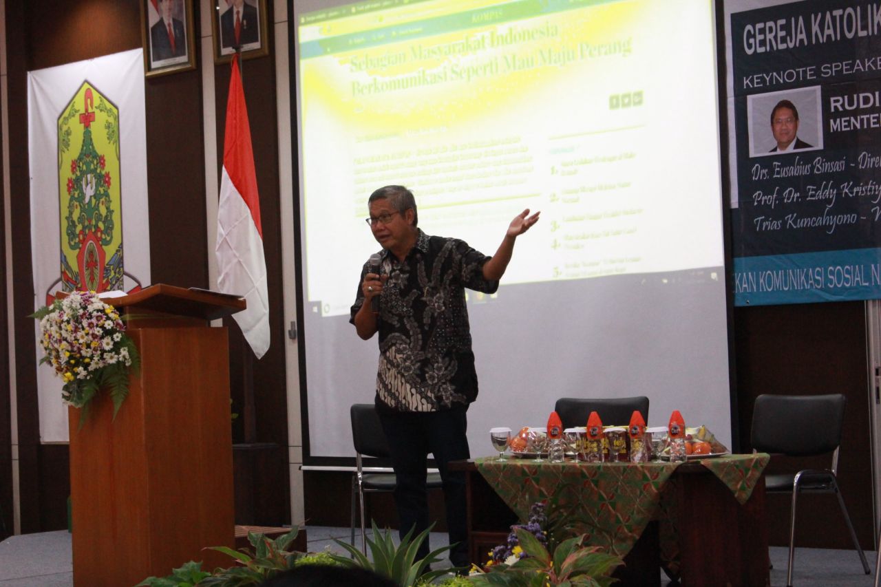 Selain Trias Kuncahyono, seminar kali ini menghadirkan Rudi Antara (Menkominfo) sebagai keynote speaker Direktur Jenderal Bimas Katolik Drs. Eusabius Binsasi, dan Guru besar sejarah STFK Driyakarya Jakarta, Prof. Dr. Eddy Kristiyanto, OFM.