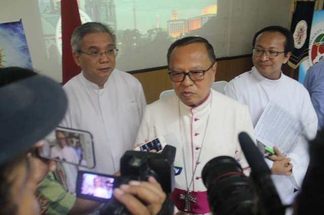 Hadir pula dalam konferensi pers mendampingi Mgr Suharyo, Vikaris Jenderal KAJ Romo Samuel Pangestu dan Kepala Paroki Katedral St Perawan Maria Diangkat ke Surga Jakarta, Romo A. Hani R. Hartoko.