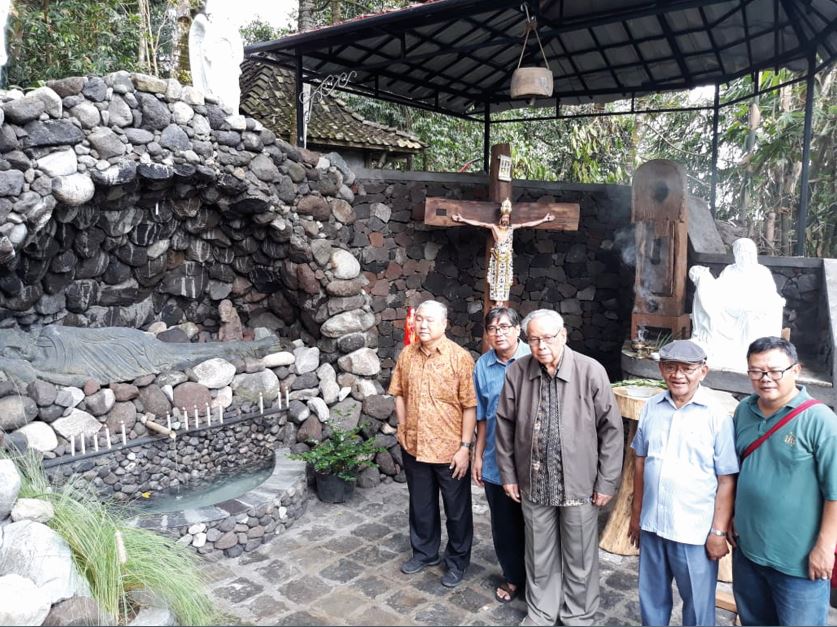 Kardinal Julius Darmaatmaja SJ (ketiga dari kanan) usai memberkati Gua Seloning di Omah Petroek.