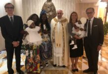 Apabila si bayi dalam bahaya maut, tidak perlu menunggu kehadiran pastor untuk membaptisnya. Orang tua sendiri atau bidan, perawat atau siapa saja yang mengerti, yang ada di situ, langsung mencedok air dan menuangkannya pada kepala bayi itu sambil berkata “Aku membaptis engkau, dalam nama Bapa dan Putera dan Roh Kudus!”.