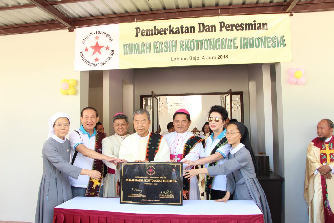 HIDUPKATOLIK.com – ADMINISTRATOR Apostolik Ruteng, Mgr Silvester Tung Kiem San dan Pendiri Kongregasi Saudara dan Saudari Yesus Kkottongnae (Congregation of Kkottongnae Brother and Sister of Jesus) meresmikan Rumah Kasih Kkottongnae Indonesia, di Gang Tengah, Cowang Dereng, RT 05 RW02, Desa Batu Cermin, Kecamatan Komodo, Kabupaten Manggarai Barat, Flores, Nusa Tenggara Timur, Senin pagi, 4/6/2018.