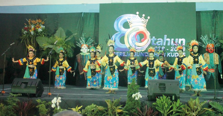 Group Tari RPTRA yang menampilkan tarian daerah pada HUT ke-80 Paroki Kemakmuran.