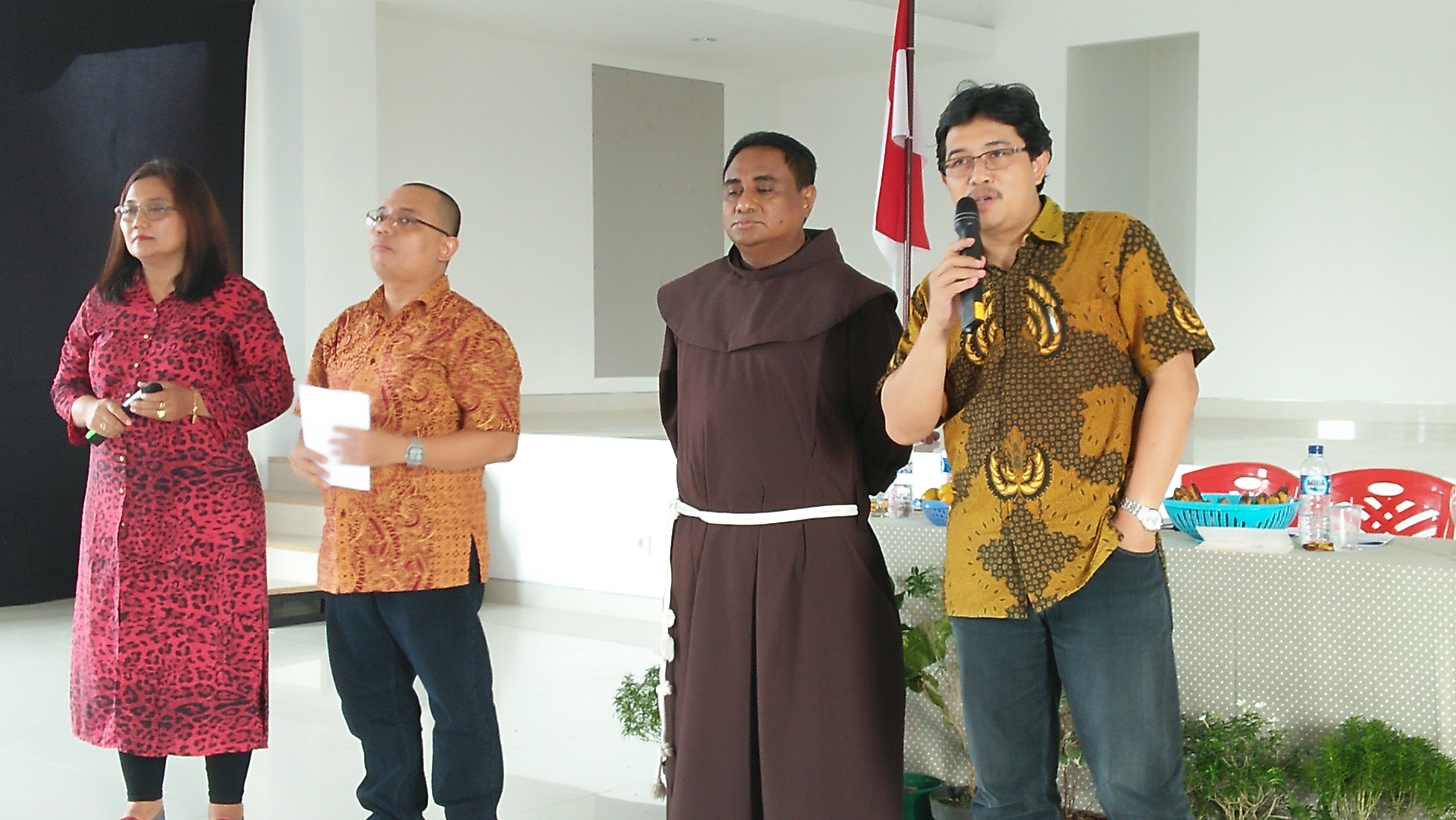 Pastor Paulus C. Siswantoko (Sekretaris Komisi Kerasulan Awam, KWI), Pastor Alforinus Gregorius Pontus, OFM (Pastor Paroki Santo Paulus Depok/ Moderator Bidang Kemasyarakatan Dekanat Utara, Keuskupan Bogor), Y. Ari Nurcahyo (Tim 7 Forum Masyarakat Katolik Indonesia, Keuskupan Bogor), dan Elisabeth Setyaningsih (Moderator Seminar).