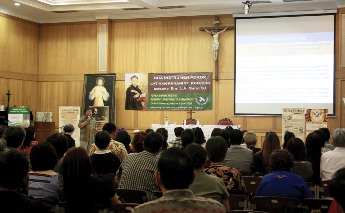 HIDUPKATOLIK.com – KEMAJUAN teknologi yang begitu pesat disertai aktivitas manusia yang cepat, tak jarang membuat manusia mengalami kekeringan rohani. “Ini yang kadang kurang kita sadari,” tutur Pastor Leo Agung Sardi SJ dalam seminar Latihan Rohani Ignasian yang diselenggarakan oleh Tim Schooled by The Spirit (SBS), di Aula Gereja St Theresia Menteng, Jakarta Pusat, Jumat, 8/6.