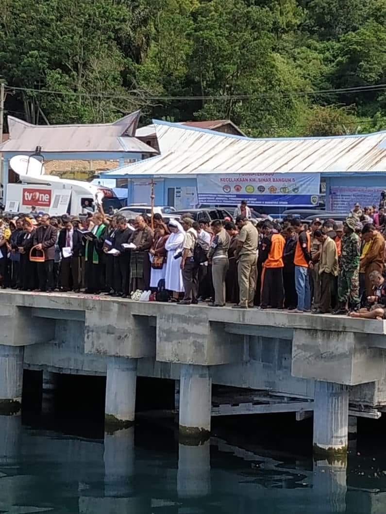 Acara tersebut dilakukan sebagai penghormatan terakhir bagi sanak saudara mereka yang menjadi korban KM Sinar Bangun yang karam di Danau Toba, Sumatra Utara pada Senin, 18/6 lalu.