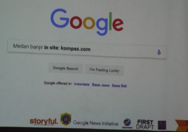 Pertanyaan selanjutnya adalah bagaimana menelusuri informasi hanya pada satu situs mainstream? Penelusuran secara spesifik dapat dilakukan dengan menambahkan kata “in site pada kolom pencarian. Contoh: “medan banjir in site: kompas.com”