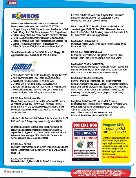 HIDUPKATOLIK.com – AGENDA Hidup EDISI 31-32