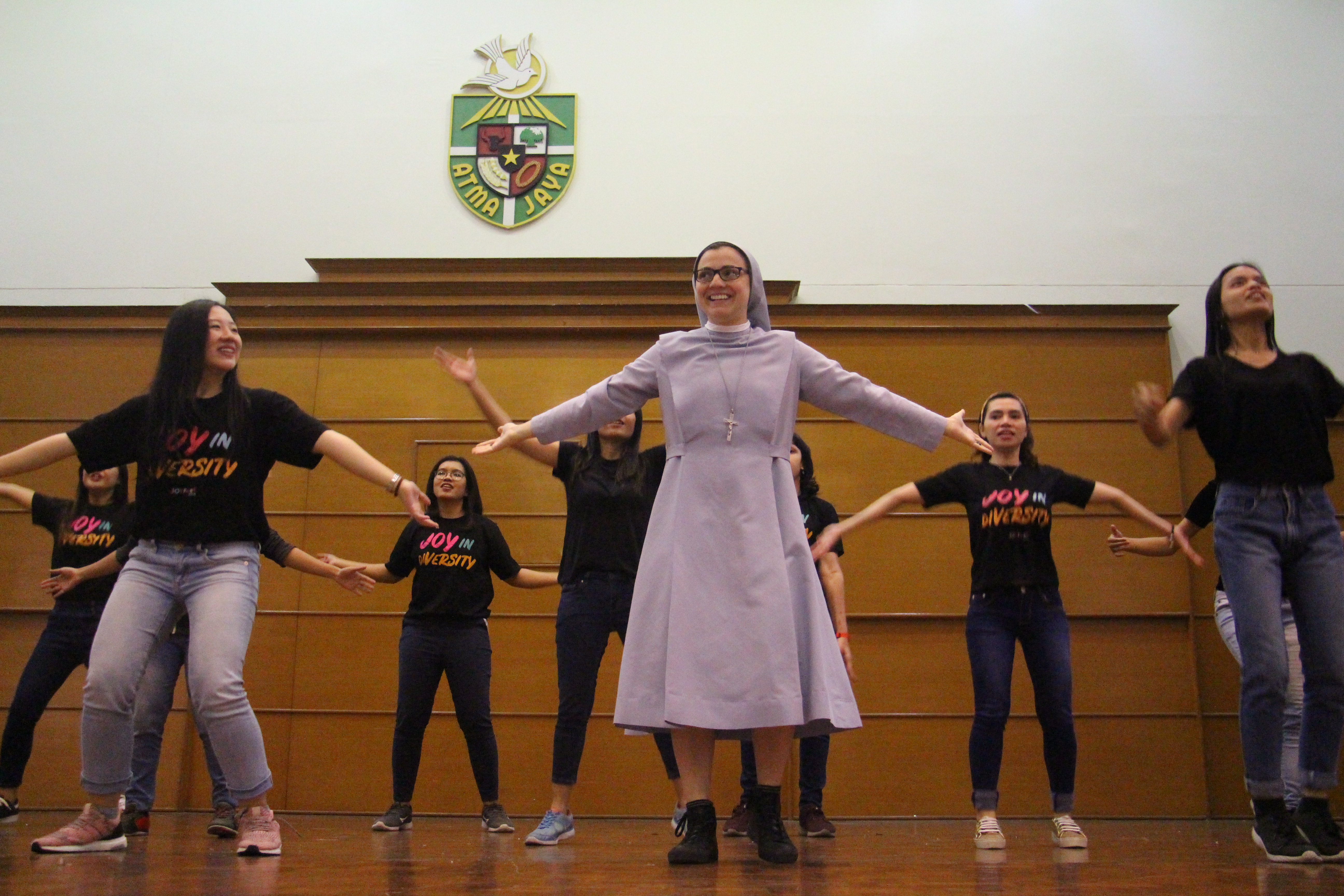 HIDUPKATOLIK.com – Suster Cristina Scuccia, OSU ikut berdansa bersama para panitia JOYFest usai Misa Perutusan Panitia, Minggu, 9/9/2018. Penampilan yang tak direncanakan itu sontak mengundang antusias seluruh panitia dan undangan yang hadir.