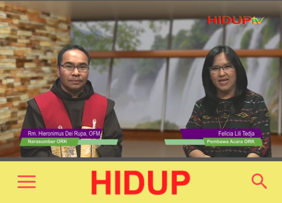 (RM. Hieronimus Yoseph Dei Rupa, OFM dan Lili Tedja hari JUMAT ini dapat Anda saksikan dalam “Oase Rohani Katolik” di TELEVISI: www.hidup.tv 05.00; 08.00; 11.00, 14.00, 17.00, 20.00, 23.00 WIB, dst; di RADIO: Mandarin Station 98.3 FM pk.05.30; klik www.radio.kaj.or.id pk.06.00; 12.00; 18.00 WIB). Silakan share👍