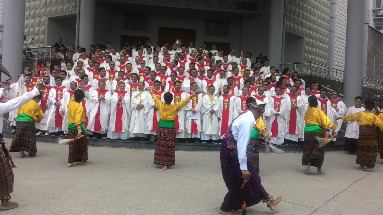 Usai misa penutupan, acara dilanjutkan dengan sambutan meriah, dengan suguhan berbagai elemen budaya baik dari Flores maupun Jawa.