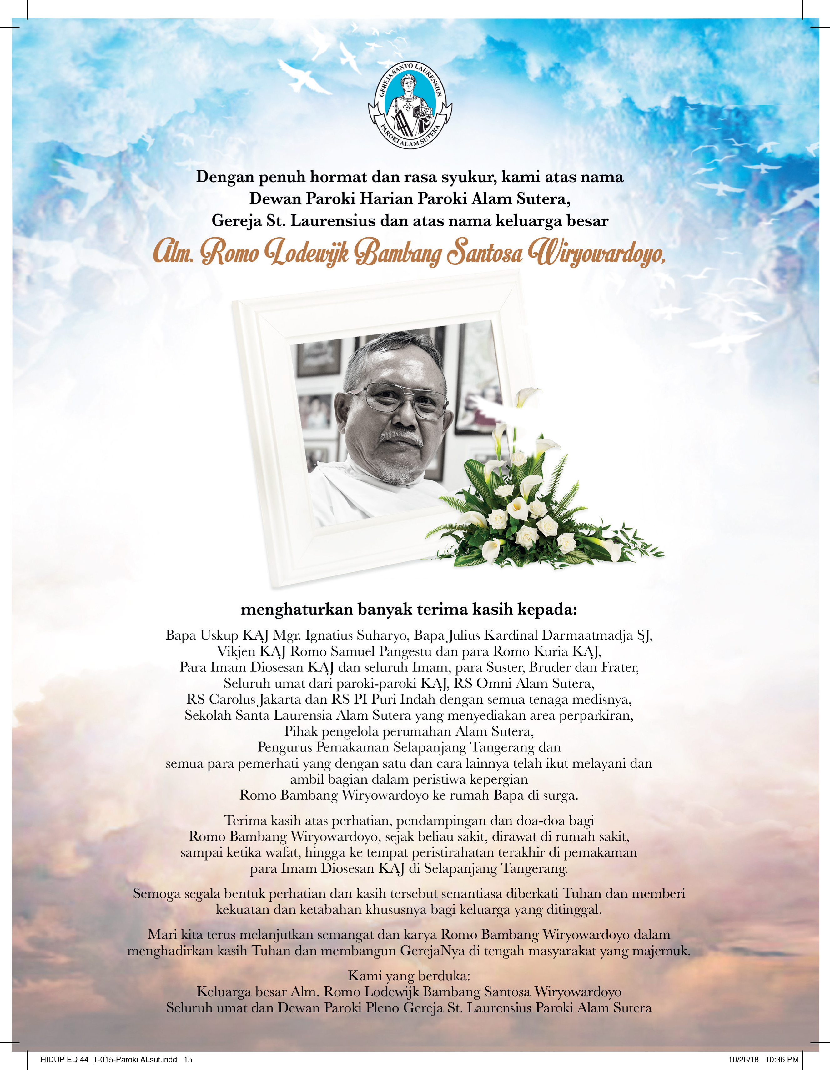 RIP ROMO LODEWIJK BAMBANG SANTOSA WIRYOWARDAYA SEMOGA BELIAU DITERIMA DISISI KANAN ALLAH BAPA YANG MAHA KUASA .AMIN.