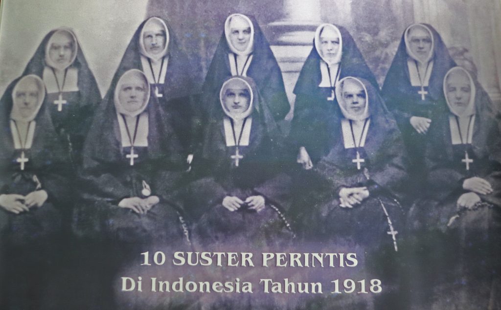 [dok.CB]Karya misi untuk melayani yang lemah di Hindia Belanda itu dirintis oleh Muder Alfonsa (Pemimpin), Sr Lina (Asisten), Sr Ambrosine (Penasehat kedua), Sr Hermana, Sr Ignatio, Sr Justa, Sr Gratiana, Sr Chrispine, Sr Isabella, dan Sr Judith.