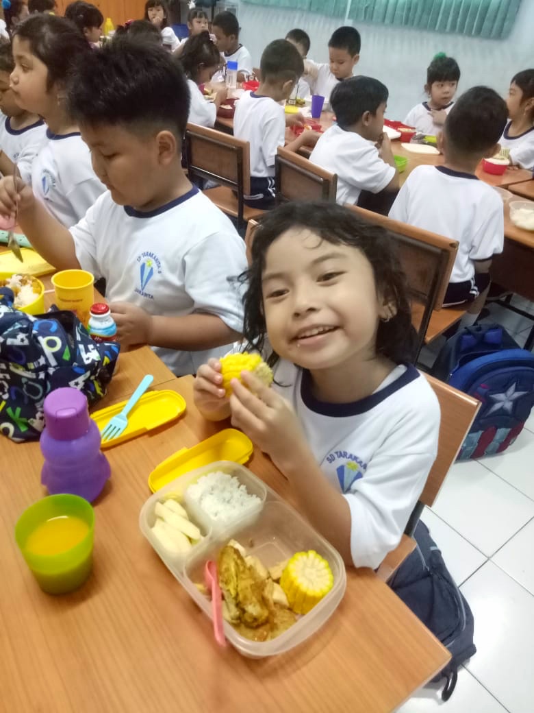 Karena membuang makanan sama saja dengan mencuri makanan dari meja orang miskin. (Paus Fransiskus). Ajakan mulia itu diterapkan sejak dini kepada siswa-siswi SD Tarakanita 5 yang terekam dalam rangkaian foto berikut.