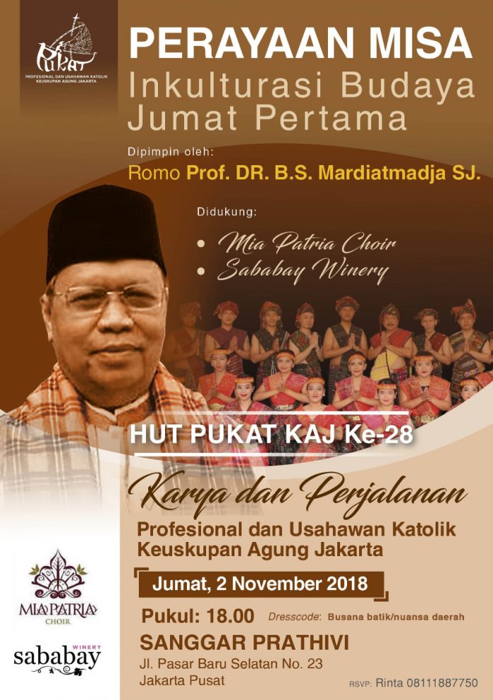 Misa Jumat Pertama dan perayaan HUT PUKAT KAJ ke-28. Dipimpin oleh Romo Prof. DR. B. S. Mardiatmadja SJ.