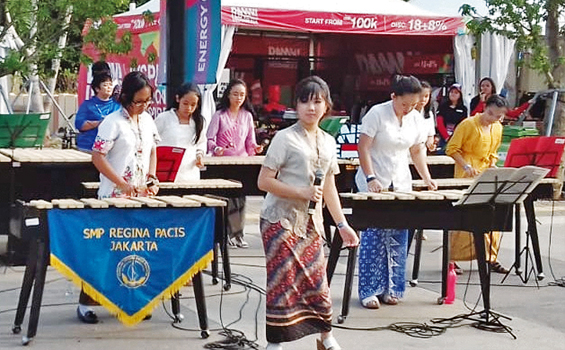 Lagu “Berkibarlah Benderaku” berkumandang di antara ribuan orang yang lalu lalang di salah satu sudut Gelanggang Olah Raga Bung Karno, Jakarta Pusat. Namun, jangan membayangkan lagu itu dinyanyikan dengan iringan band atau orkestra. Sembilan siswa SMP Regina Pacis, Jakarta mengiringi lagu itu dengan seperangkat alat musik Kolintang.