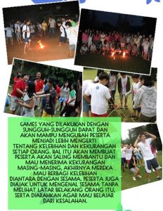 Peserta juga diajak untuk mengenal sesama tanpa melihat latar belakang orang itu, serta diarahkan agar mau belajar dari kesalahannya.
