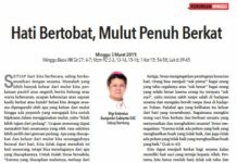 Bertobat menuntut perubahan sikap. Natal sudah dekat. Sudah di ambang pintu, Mari tingkatkan persiapan kita. Bukan hanya menyediakan pohon Natal dengan berbagai aksesoris, melatih nyanyian, atau membersihkan lingkungan gereja. Tidak kalah penting bahkan yang terpenting ialah menyiapkan hati agar layak menerima kelahiran Yesus Sang Juru Selamat dengan bertobat.