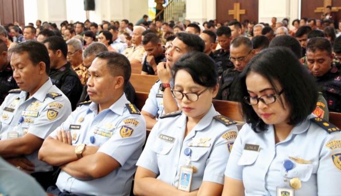 HIDUPKATOLIK.com – RATUSAN umat Keuskupan TNI dan Polri merayakan Misa Hari Pahlawan di Gereja Anak Domba St Yohanes Maria Vianney Cilangkap, Jakarta Timur, Jumat 16/11. Uskup Militer Indonesia, Mgr Ignatius Suharyo, dalam khotbahnya mengungkapkan, peringatan Hari Pahlawan merupakan salah satu simbol untuk mengenang dan menghidupi jasa para pahlawan sekaligus membangkitkan kembali patriotisme.