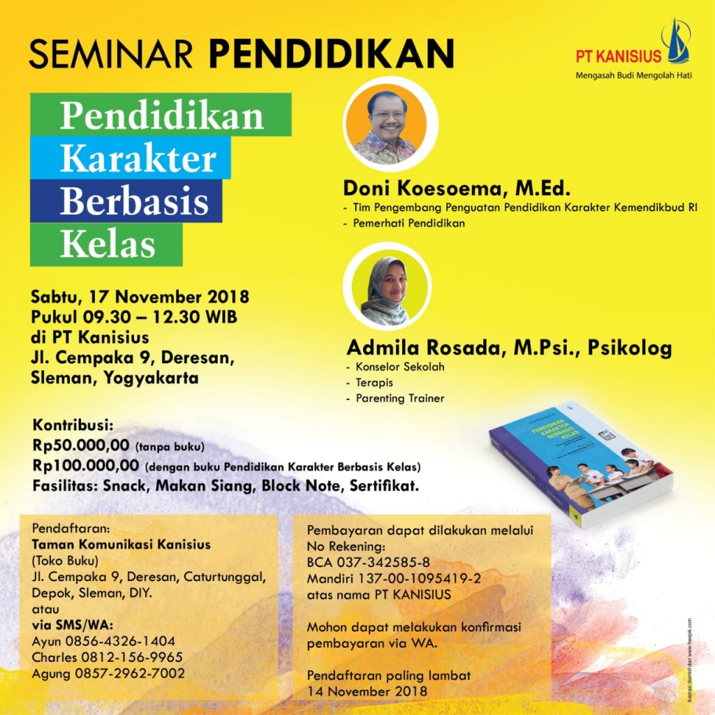 Dengan bekal ini mereka bisa hidup di tengah masyarakat. Hal ini disampaikan Doni Koesoema dalam seminar bertema “Pendidikan Karakter Berbasis Kelas” di Kompleks Penerbit Kanisius, Deresan, Yogyakarta, Sabtu, 17/11.