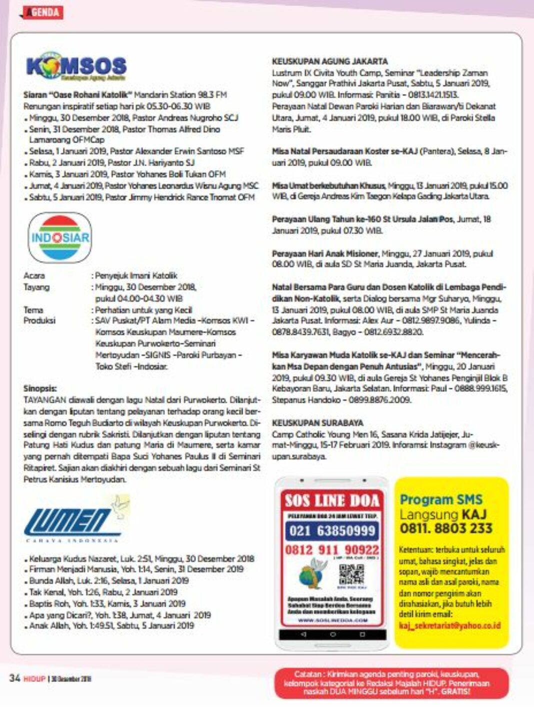 HIDUPKATOLIK.COM – Agenda HIDUP Edisi ke-1