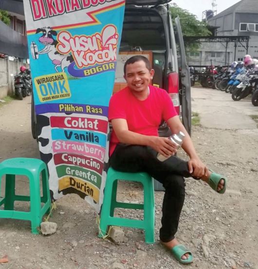 Berbeda dengan orang muda kebanyakan, Indro memilih membuka usahanya di jalanan. Sejak 2014, pria berusia 34 tahun ini menjadi penjual susu di jalan sekitar Cibinong dan Citeurep. Bermodalkan mobil, ia berkeliling dari pagi hingga sore, untuk berjualan susu varian rasa di pinggir jalan.