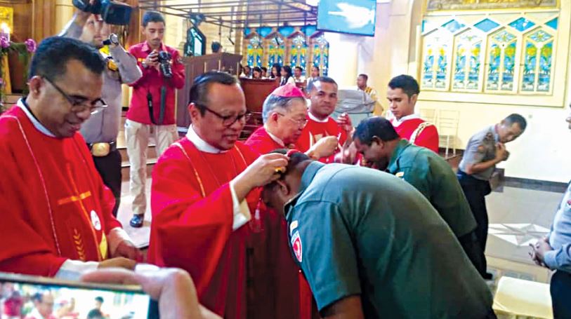 Pembagian Rosario Merah Putih kepada semua Prajurit, Bhayangkara, dan PNS/ASN Katolik di Lingkungan TNI dan Polri se-wilayah Garnisun Ambon juga diadakan saat Misa kudus yang berlangsung di Gereja St Fransiskus Xaverius, Katedral Ambon, Kamis, 13/12.