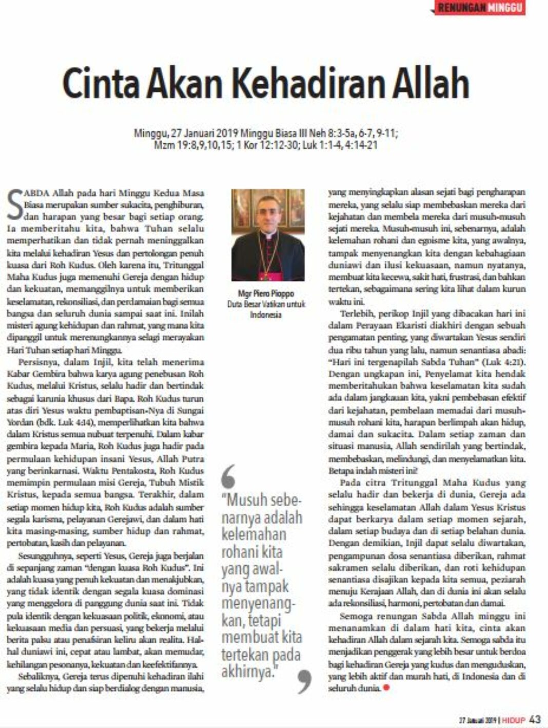 Apa pesan untuk para pastor, umat dan keluarga yang kebetulan menghadapi situasi ini?