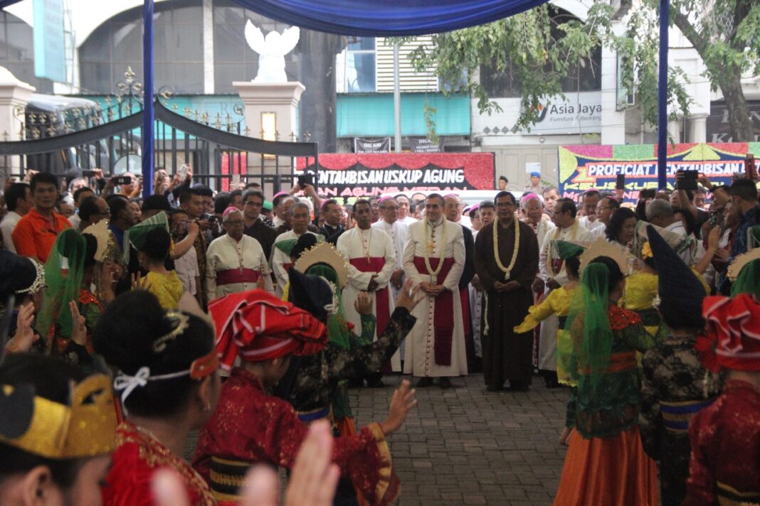 HIDUPKATOLIK.COM – Rombongan Duta Besar Vatikan untuk Indonesia Mgr Piero Pioppo disambut dengan meriah saat tiba di Gedung Catholic Center Keuskupan Agung Medan (KAM), Jumat 01/02.