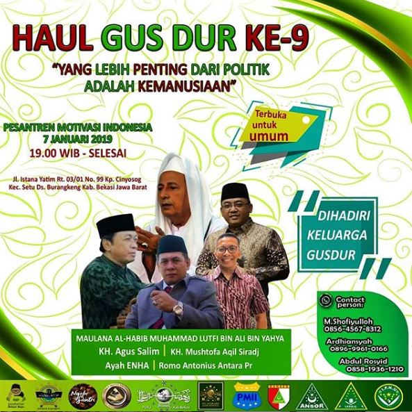 Ayah Enha, sapaan akrabnya berharap, melalui acara haul Gus Dur ke-9 yang bertema “Yang Lebih Penting dari Politik adalah Kemanusiaan”, semakin meluas dan semakin kaya pemikiran umat, dengan merujuk kepada konsep pemikiran Gus Dur yang sangat baik.