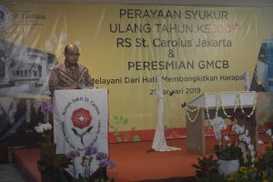 “Kita bersyukur kepada Tuhan yang dari waktu ke waktu mengutus pribadi-pribadi yang rela, untuk merawat, menjaga, dan mengembangkan pelayanan kesehatan ini. Kita kenang dalam doa-doa kita, para perintis yang telah mendahului kita, dan kita mohon bagi kita semua, agar dengan peran yang berbeda dapat menjalankan peran untuk tugas perutusan kesehatan yang mulia ini.”