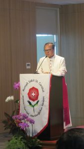 “Sekecil apapun agar dapat membawa orang untuk merasakan kebaikan Tuhan sendiri,” tutur Mgr Suharyo yang memimpin Perayaan Ekaristi HUT bersama enam konselebran, Pastor Samuel Pangestu, Pr (Vikjen KAJ); Pastor Justinus Sudarminta, SJ (Wakil Ketua PPSC-Perkumpulan Perhimpunan St Carolus Vereeniging), Pastor Agung Setiadi, OFM (Kepala Paroki Kramat), Pastor Stef. Royke Djakarya, Pr (Pengurus Dana Pensiun Konferensi Waligereja Indonesia-KWI), Pastor Harry Sulistyo, Pr (Ketua Komsos KAJ dan tim drama musikal), dan Pastor Odemus Bei Witono (Direktur Civita).