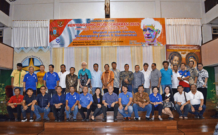 Seminar Politik malam itu merupakan kerjasama Komisi HAAK Keuskupan Banjarmasin dengan DPD Vox Point Indonesia Kalimantan Selatan. Pembicara lain seminari ini adalah Ketua DPD Vox Point Indonesia Kalimantan Selatan Willy Sebastian.