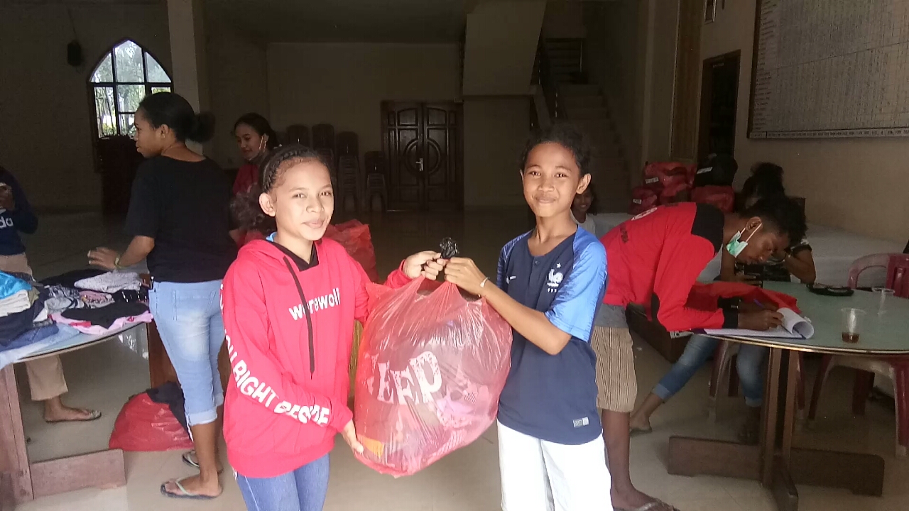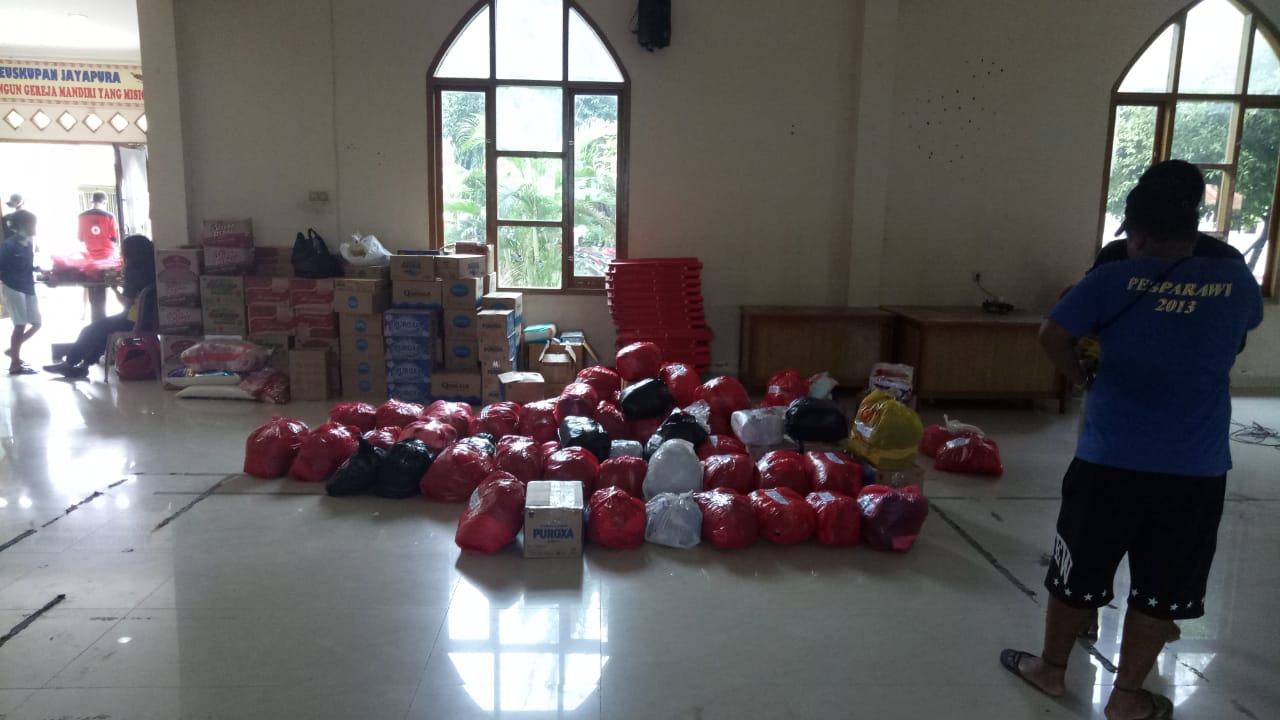 Aksi penyaluran bantuan melalui Posko Bantuan Korban Banjir segera dihimpun oleh umat Paroki Sang Penebus Sentani, Orang Muda Katolik (OMK) bekerjasama dengan seksi sosial dari masing-masing paroki.