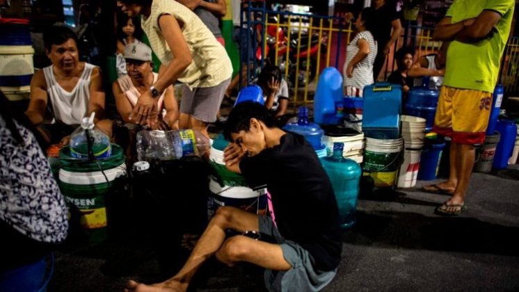 Sekitar 6,8 juta orang merasakan dampak kekurangan air di Manila dan sekitarnya. Di beberapa daerah, warga terlihat antri dengan membawa wadah masih-masing untuk mendapatkan jatah air.