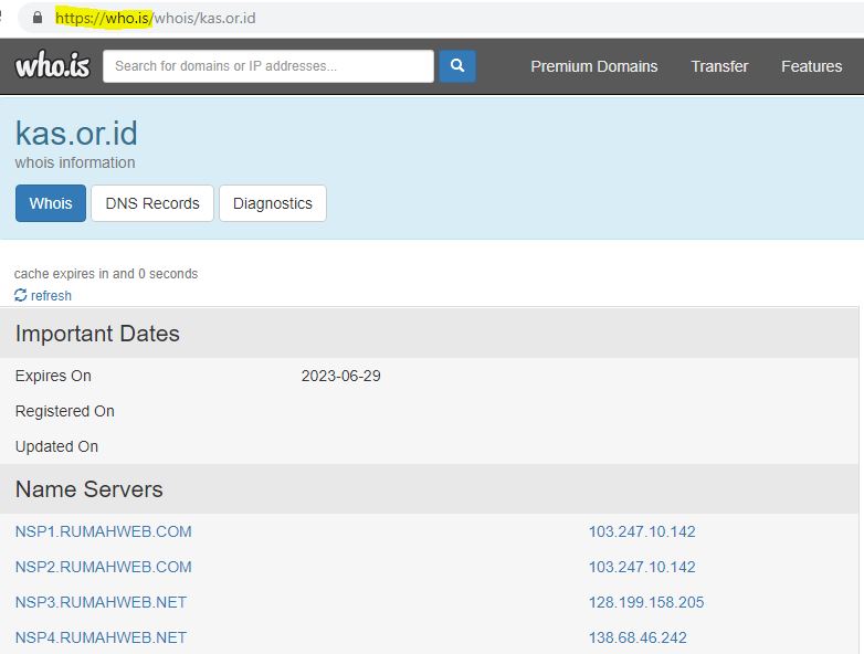 2) cek sejarah website di https://who.is/ Lewat situs ini, kita bisa mengetahui informasi tentang satu website, sudah berapa lama aktif, siapa pembuatnya, alamatnya di mana. Jika web baru dibuat dan identitasnya ngga jelas, patut dicurigai!