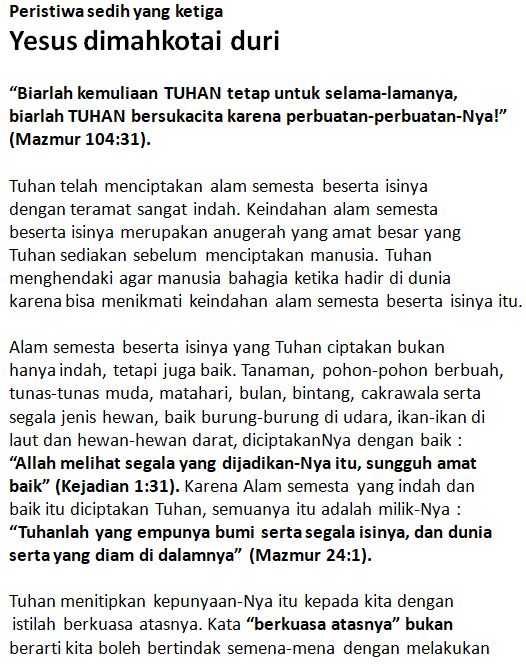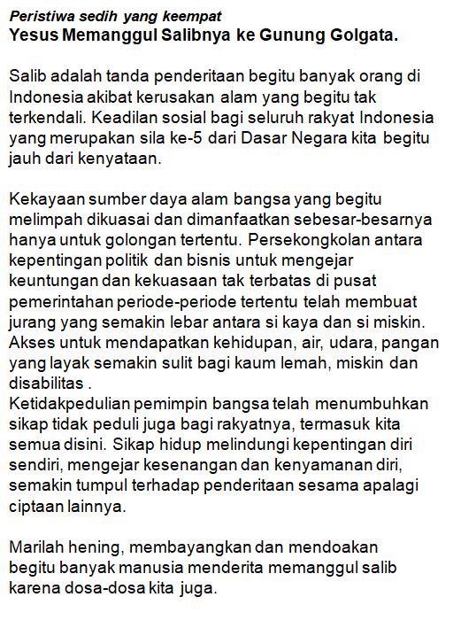 Peristiwa sedih yang keempat : Yesus Memanggul Salibnya ke Gunung Golgota.