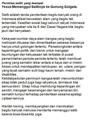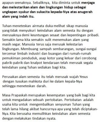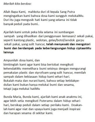 Sumber: Rosario Earth Hour/ Pastor Al.Andang L.Binawan, SJ