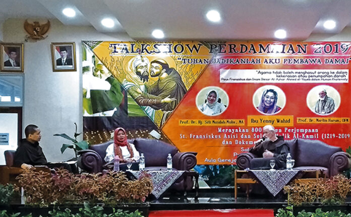 HIDUPKATOLIK.com – Lagu “Assalamualaikum” karya Opick mengalun dari bibir para frater Fransiskan di Aula Gereja St Paskalis, Cempaka Putih, Jakarta Pusat, Sabtu, 16/3. Mereka menyanyikan lagu tersebut sembari menunggu peserta gelar wicara bertajuk “Tuhan Jadikanlah Aku Pembawa Damai” berdatangan.