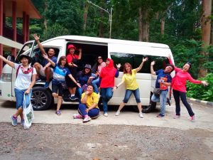 Kelompok eksplorer ke Sukabumi ini beranggotakan 13 orang yang terdiri dari 10 orang wanita dan 3 pria. Mereka berkumpul pukul 05.30 pagi. Perjalanan sekitar 4 jam kemudian tiba di Sukabumi. Tidak saja jembatan gantung yang menjadi tujuan mereka tetapi juga air terjun tak terlewatkan dari destinasi mereka. Di air terjun yang memiliki ketinggian kurang lebih 20 meter ini, para anggota sambil santai menikmati pemandangan. Sambil mengeksplor alam mereka juga tak melewatkan momen berswafoto bersama.