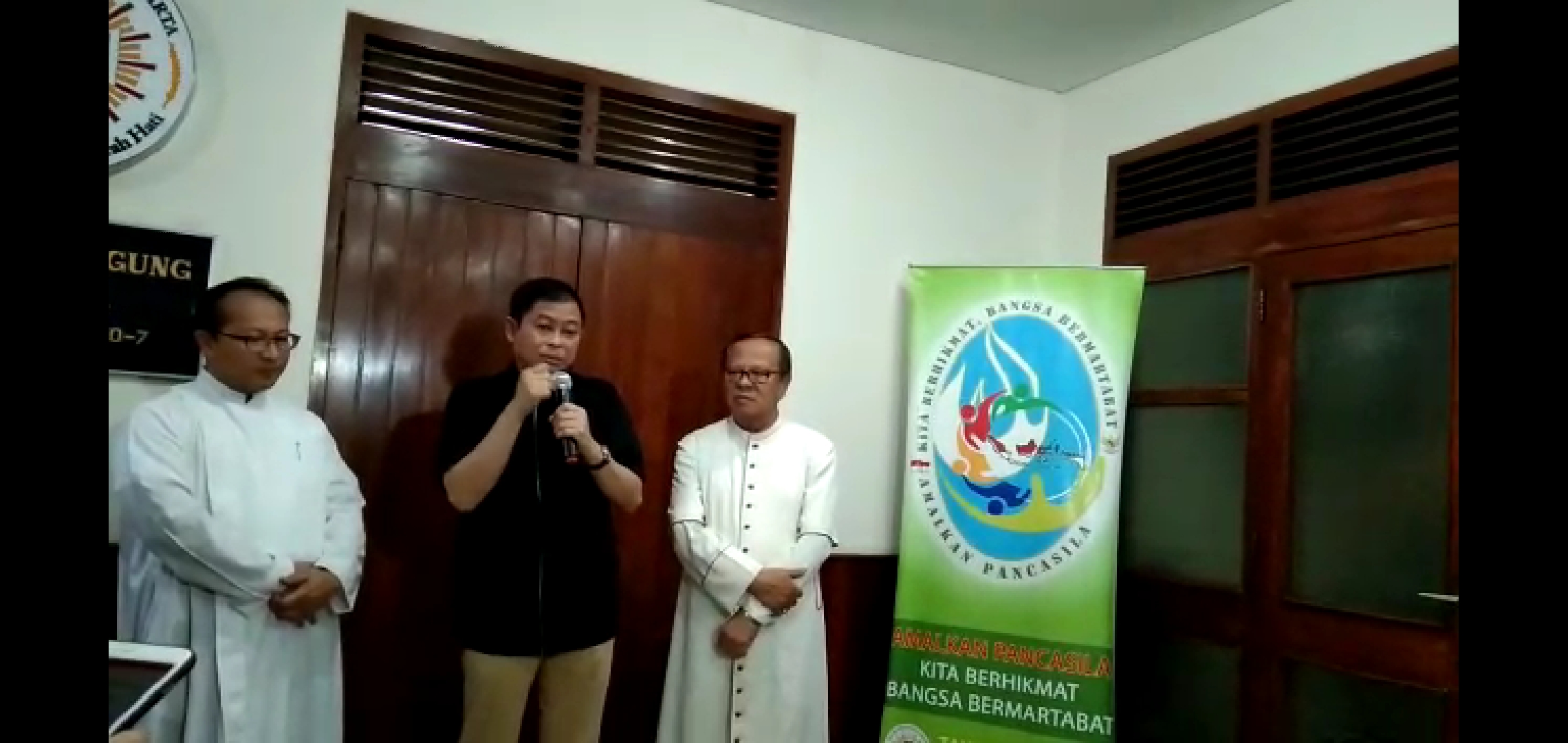 HIDUPKATOLIK.com – Usai menghadiri Ibadat Jumat Agung di Gereja Katedral Jakarta (19/4) pada pukul 15.00 WIB, Menteri Energi dan Sumber Daya Mineral Republik Indonesia, Ignasius Jonan bersama Uskup Agung Jakarta Mgr Ignatius Suharyo, didampingi oleh Kepala Paroki Katedral Pastor Hani Rudi Hartoko, SJ menggelar jumpa pers di teras Wisma Keuskupan Agung Jakarta (KAJ) .
