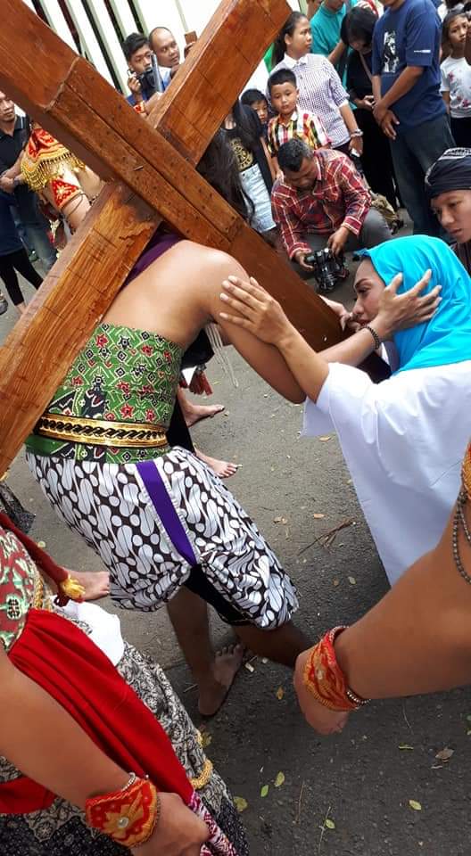 Tampilan busana visualisasi Jalan Salib tahun ini tampak beda karena para pemeran mengenakan kostum tradisional Jawa.