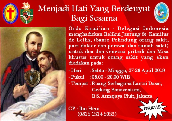 Jadwal Penghormatan Reliqui St. Kamilus di RS St. Carolus, Selasa, 23 April 2019, sebagai berikut: