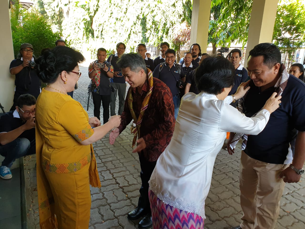 Mgr Antonius Subianto Bunjamin OSC dan peserta PKSN disambut dengan tarian setempat/Hasiholan Siagian