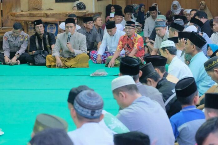 Ratusan orang mengikuti acara buka puasa bersama lintas agama di kediaman tokoh masyarakat Cibatu Haji Oding, Cikarang Pusat, Bekasi. Sabtu, 1 Juni 2019. Acara bersamaan