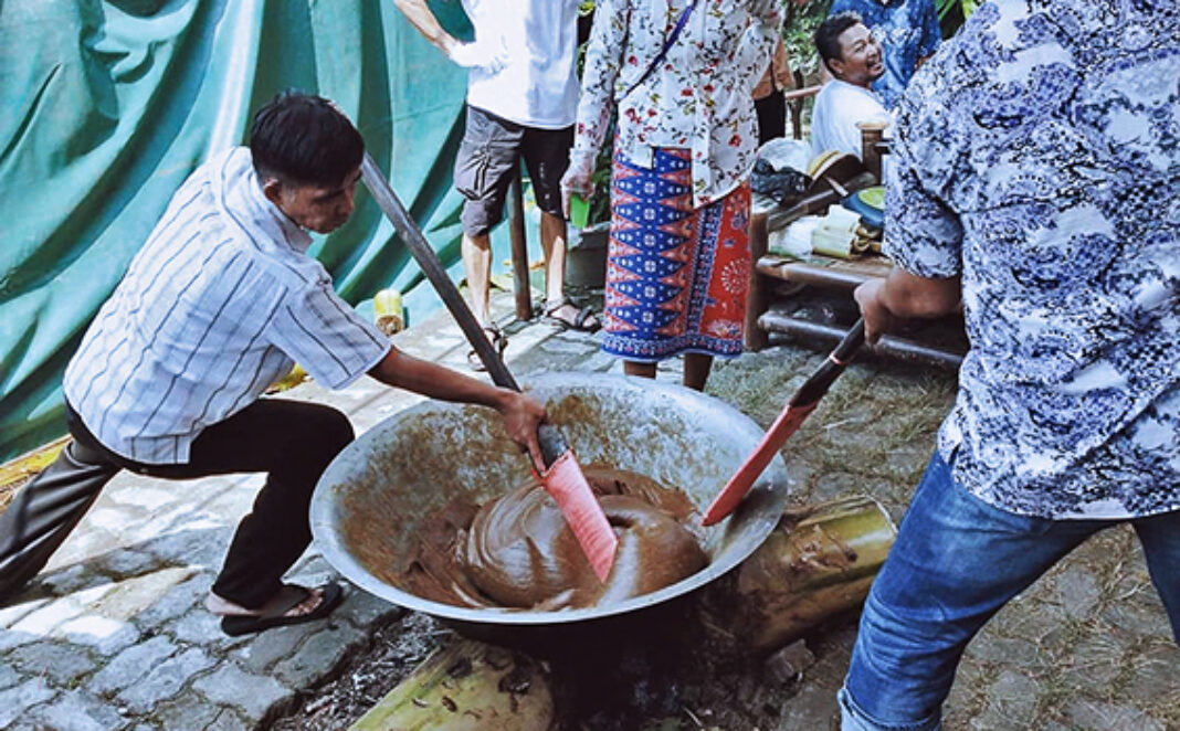 Proses ngaduk dodol dalam Sedekah Bumi, sambung Martin, dimulai sejak Sabtu sore. Semua bahan dibuat secara tradisional. Ini yang membuat dodol mampu bertahan hingga berbulan-bulan tanpa pengawet. “Ini ada filosofinya juga bahwa sesuatu yang dibuat melalui proses lama, yang menuntut kesabaran serta disikapi dengan perilaku yang manis akan menghasilkan sesuatu yang memuaskan (awet),” jelasnya.