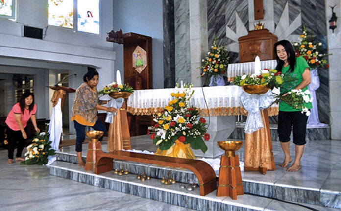 HIDUPKATOLIK.com – Salah satu titik pandang yang kerap mencuri fokus perhatian umat saat masuk ke gereja untuk beribadah adalah hiasan atau dekorasi altar. Altar yang didekor dengan memperhatikan dimensi-dimensi estetis, sedikit banyak, akan menolong umat untuk lebih mengonsentrasikan pikiran dan hatinya pada pertemuan dengan Sang Ilahi. Dekorasi altar yang indah proposional bisa saja menjadi salah satu media bagi umat untuk melakukan kontemplasi pribadi maupun bersama-sama. Dekorasi altar yang mengindahkan kaidah-kaidah liturgis akan menambah suasana sakralitas dalam sebuah liturgi di dalam gereja.