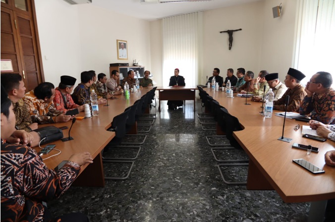 Pertemuan Delegasi Baintelkam Polri dengan Presiden Dewan Kepausan untuk Dialog Antaragama, Mgr. Ayuso. [Dok. KBRI untuk Takhta Suci]Dalam pertemuan tersebut, Mgr. Ayuso menyambut hangat kedatangan delegasi Baintelkam Polri dan mengapresiasi keharmonisan umat beragama di Indonesia yang berlandaskan Pancasila. Selain itu, Mgr. Ayuso juga menyampaikan arti penting Dokumen tentang Persaudaraan Manusia bagi Perdamaian Dunia dan Hidup Bersama (Deklarasi Abu Dhabi) yang ditandatangani oleh Paus Fransiskus dan Imam Besar Al Azhar, Ahmad Al-Tayyeb (4/2). Ia berharap dapat menjadi salah satu acuan dalam menyebarluaskan nilai-nilai toleransi antarumat beragama.